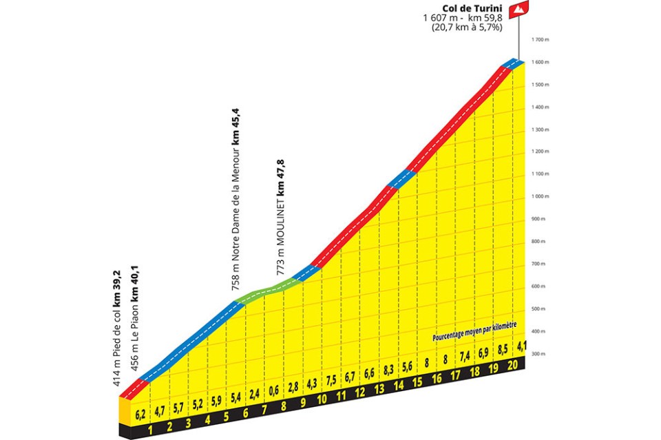 The climb is 10km at an average 6.6% to a height of 1,002m after 24.7km raced.