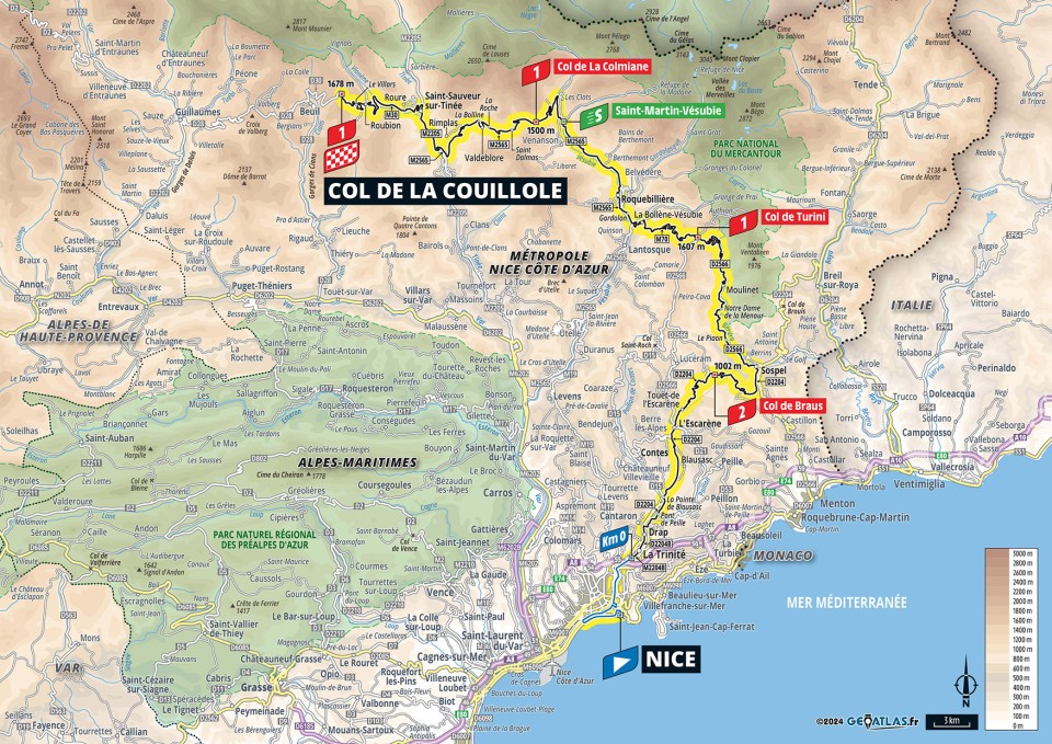 | Climbs | Col de Braus (Cat. 2) Col de Turini (Cat. 1) Col de la Colmiane (Cat. 1) Col de la Couillole (Cat. 1) |
