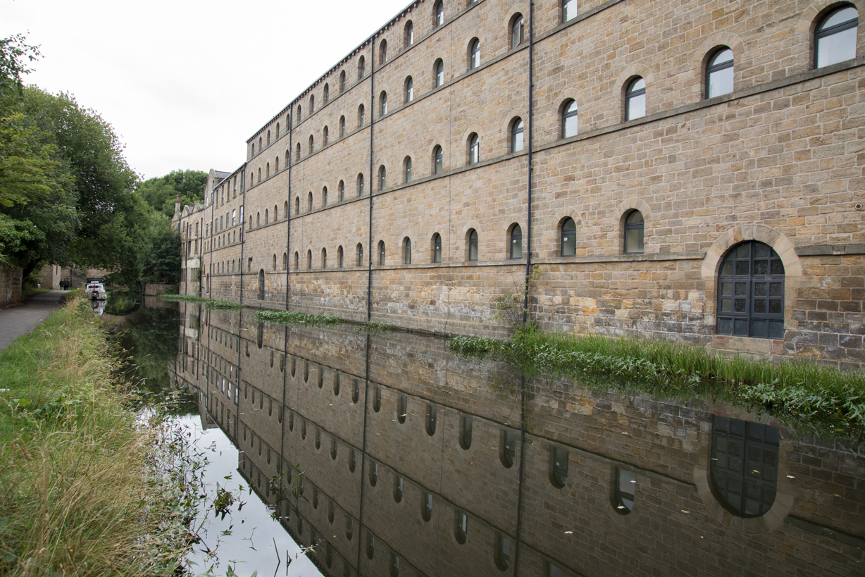 Back on the towpath, it's not much further to Saltaire. You know you're nearly there when you see the New Mill on the right of the canal and Salts Mill opposite it on the left.