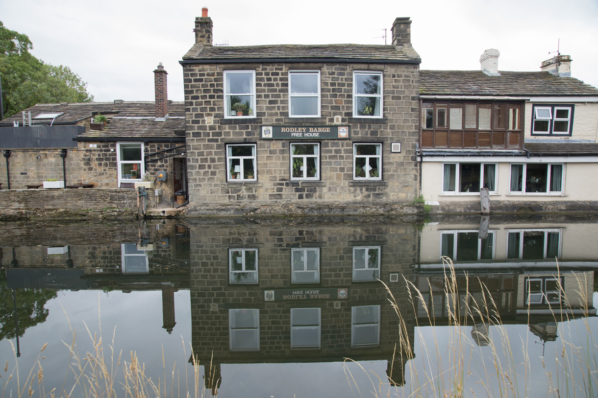 A little further along, there's a pub called the Rodley Barge, over on the other side of the canal.