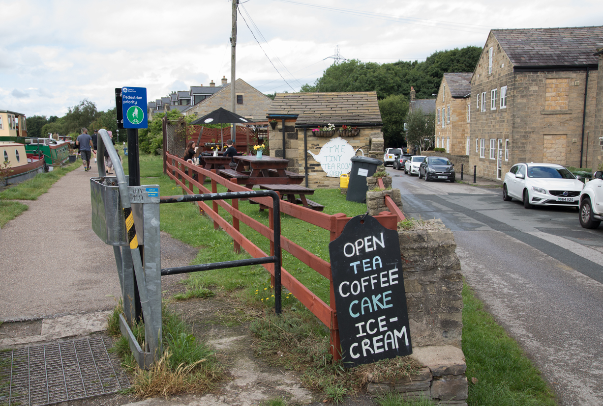Soon after, you come to Calverley Bridge Canalside Walk. The Tiny Tea Rooms are to your right, with outdoor seating.