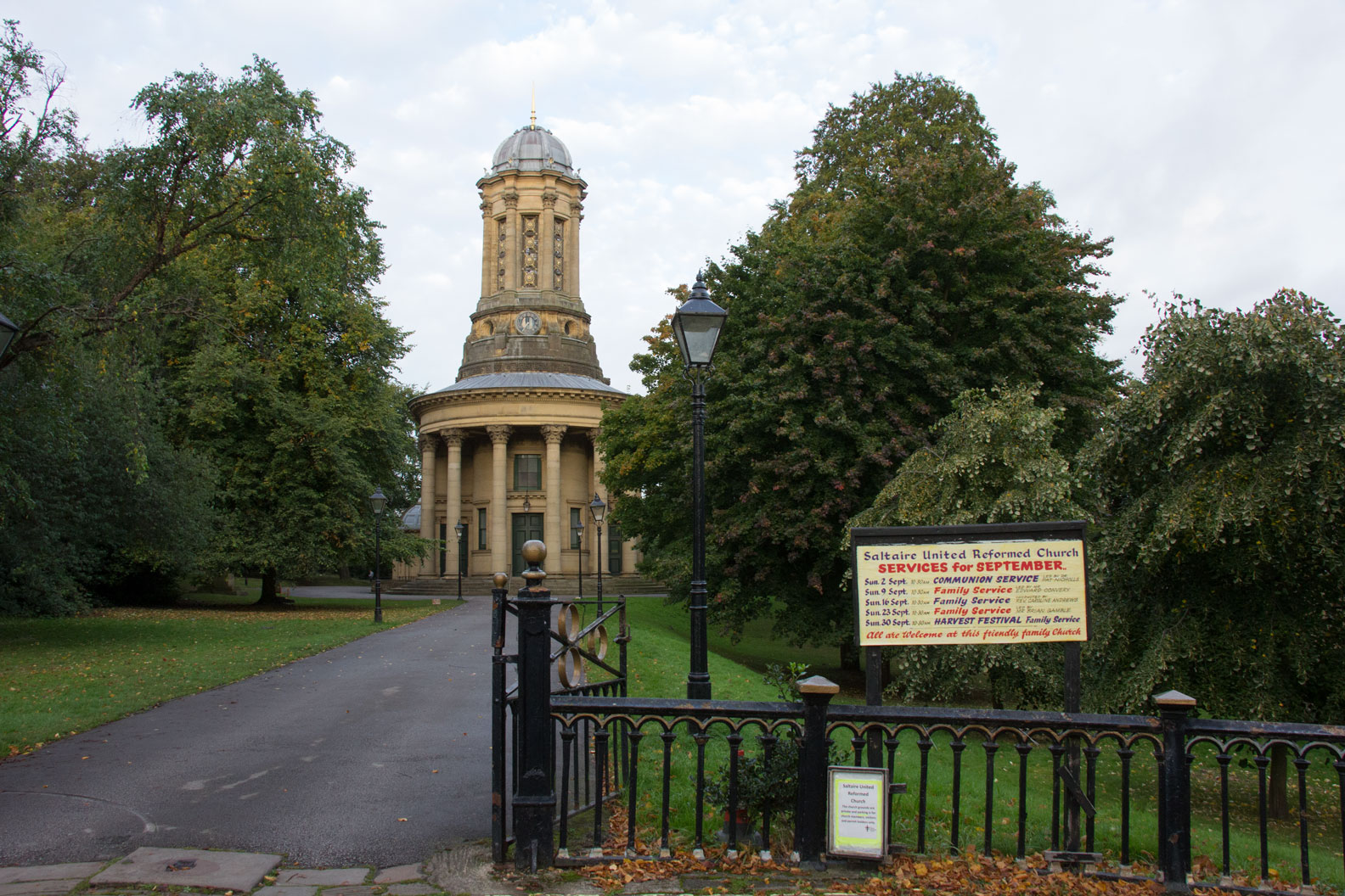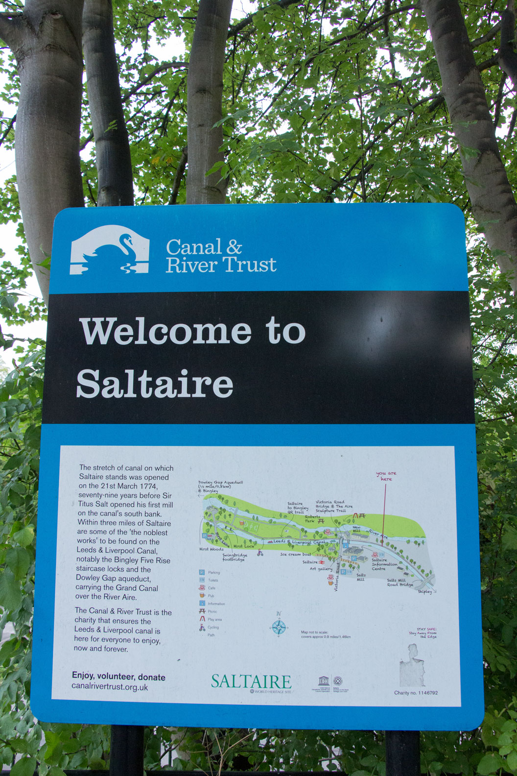 An information board tells you about Saltaire.